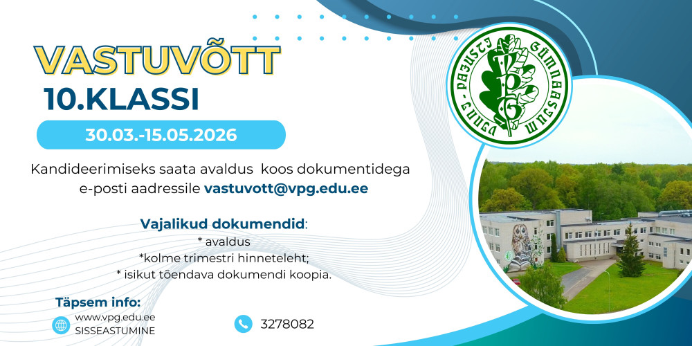 Lisainfo telefonil 327 8082 või kooli kodulehel www.vpg.edu.ee.